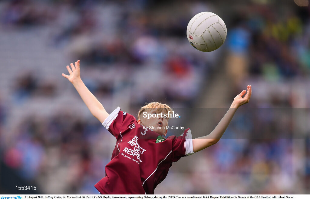 11 August 2018; Jeffrey Oates, St. Michael’s & St. Patrick’s NS, Boyle, Roscommon, representing Galway, during the INTO Cumann na mBunscol GAA Respect Exhibition Go Games at the GAA Football All-Ireland Senior Championship Semi Final match between Dublin and Galway at Croke Park in Dublin. Photo by Stephen McCarthy/Sportsfile