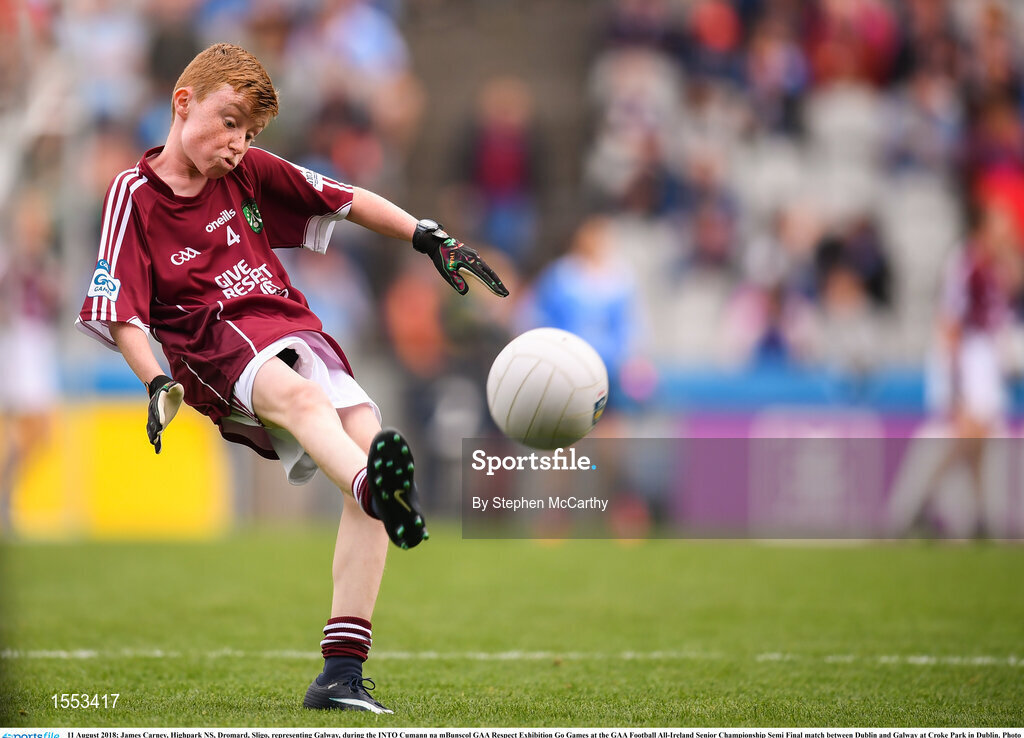 11 August 2018; James Carney, Highpark NS, Dromard, Sligo, representing Galway, during the INTO Cumann na mBunscol GAA Respect Exhibition Go Games at the GAA Football All-Ireland Senior Championship Semi Final match between Dublin and Galway at Croke Park in Dublin. Photo by Stephen McCarthy/Sportsfile