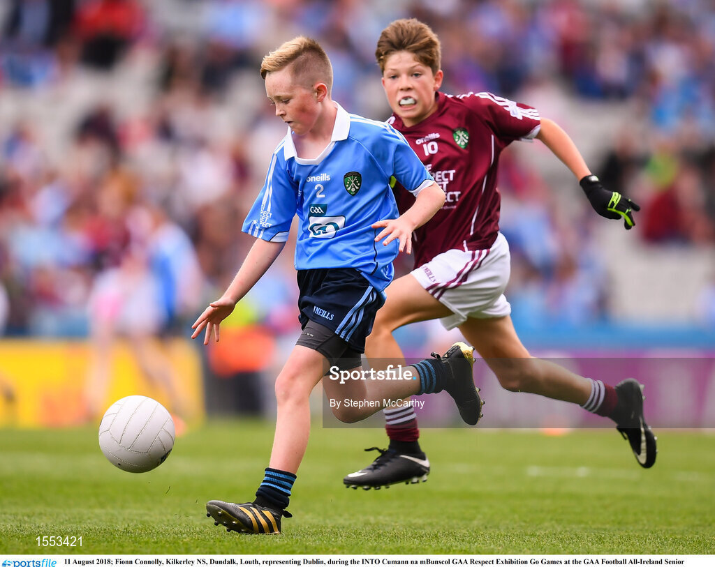 11 August 2018; Fionn Connolly, Kilkerley NS, Dundalk, Louth, representing Dublin, during the INTO Cumann na mBunscol GAA Respect Exhibition Go Games at the GAA Football All-Ireland Senior Championship Semi Final match between Dublin and Galway at Croke Park in Dublin. Photo by Stephen McCarthy/Sportsfile
