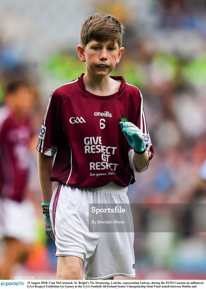 11 August 2018; Cian McCormack, St. Brigid’s NS, Drumcong, Leitrim, representing Galway, during the INTO Cumann na mBunscol GAA Respect Exhibition Go Games at the GAA Football All-Ireland Senior Championship Semi Final match between Dublin and Galway at Croke Park in Dublin. Photo by Brendan Moran/Sportsfile
