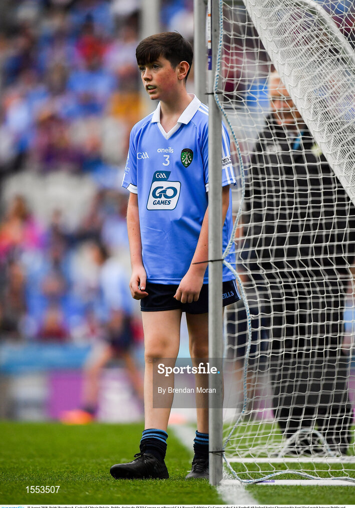 11 August 2018; Daithí Breathnach, Gaelscoil Chluain Dolcáin, Dublin, during the INTO Cumann na mBunscol GAA Respect Exhibition Go Games at the GAA Football All-Ireland Senior Championship Semi Final match between Dublin and Galway at Croke Park in Dublin. Photo by Brendan Moran/Sportsfile