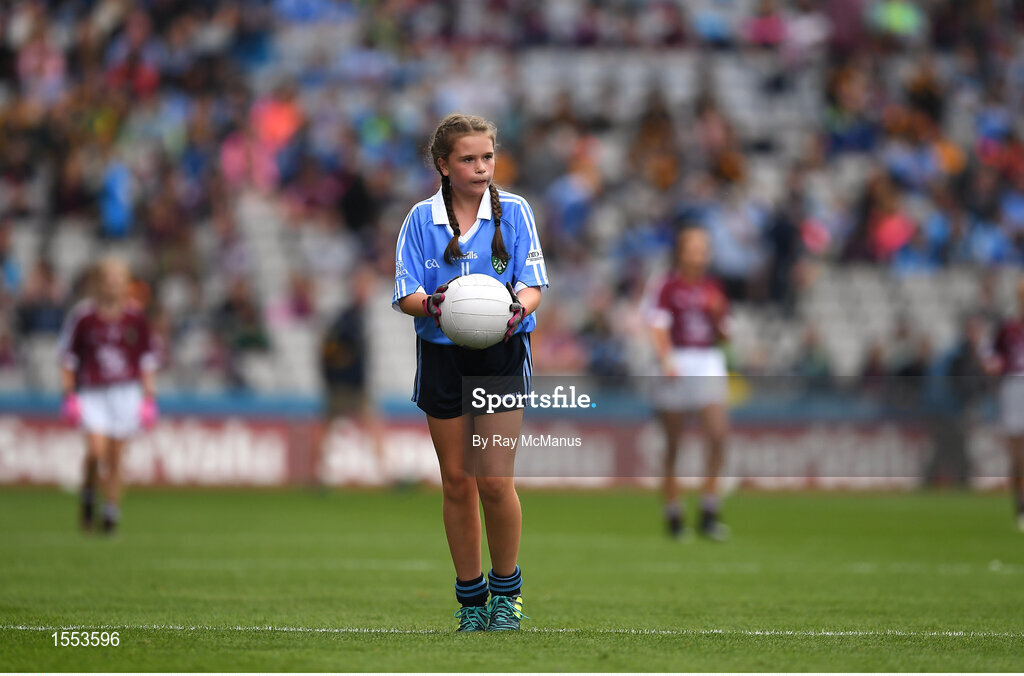 11 August 2018; Beth Hackett, St. Malachy’s PS Glencull, Ballygawley, Tyrone, representing Dublin, during the INTO Cumann na mBunscol GAA Respect Exhibition Go Games at the GAA Football All-Ireland Senior Championship Semi Final match between Dublin and Galway at Croke Park in Dublin. Photo by Ray McManus/Sportsfile