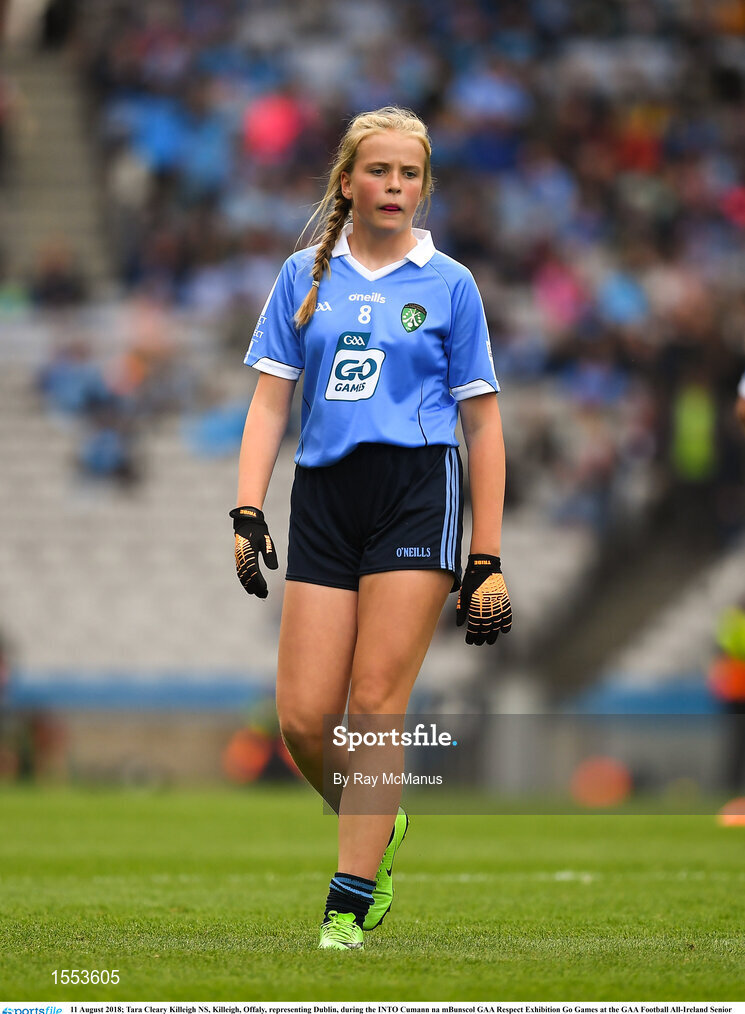 11 August 2018; Tara Cleary Killeigh NS, Killeigh, Offaly, representing Dublin, during the INTO Cumann na mBunscol GAA Respect Exhibition Go Games at the GAA Football All-Ireland Senior Championship Semi Final match between Dublin and Galway at Croke Park in Dublin. Photo by Ray McManus/Sportsfile