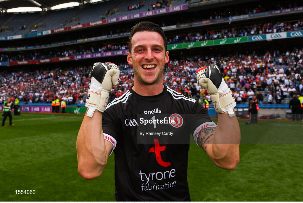 12 August 2018; Niall Morgan of Tyrone celebrates following the GAA Football All-Ireland Senior Championship semi-final match between Monaghan and Tyrone at Croke Park in Dublin. Photo by Ramsey Cardy/Sportsfile