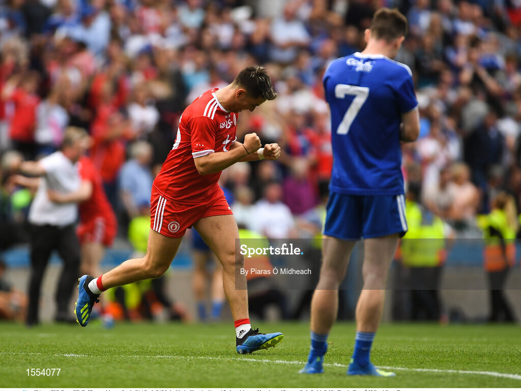 12 August 2018; Ronan O'Neill of Tyrone celebrates after the GAA Football All-Ireland Senior Championship semi-final match between Monaghan and Tyrone at Croke Park in Dublin. Photo by Piaras Ó Mídheach/Sportsfile