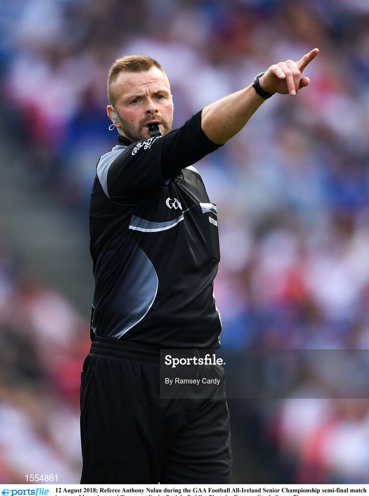 12 August 2018; Referee Anthony Nolan during the GAA Football All-Ireland Senior Championship semi-final match between Monaghan and Tyrone at Croke Park in Dublin. Photo by Ramsey Cardy/Sportsfile