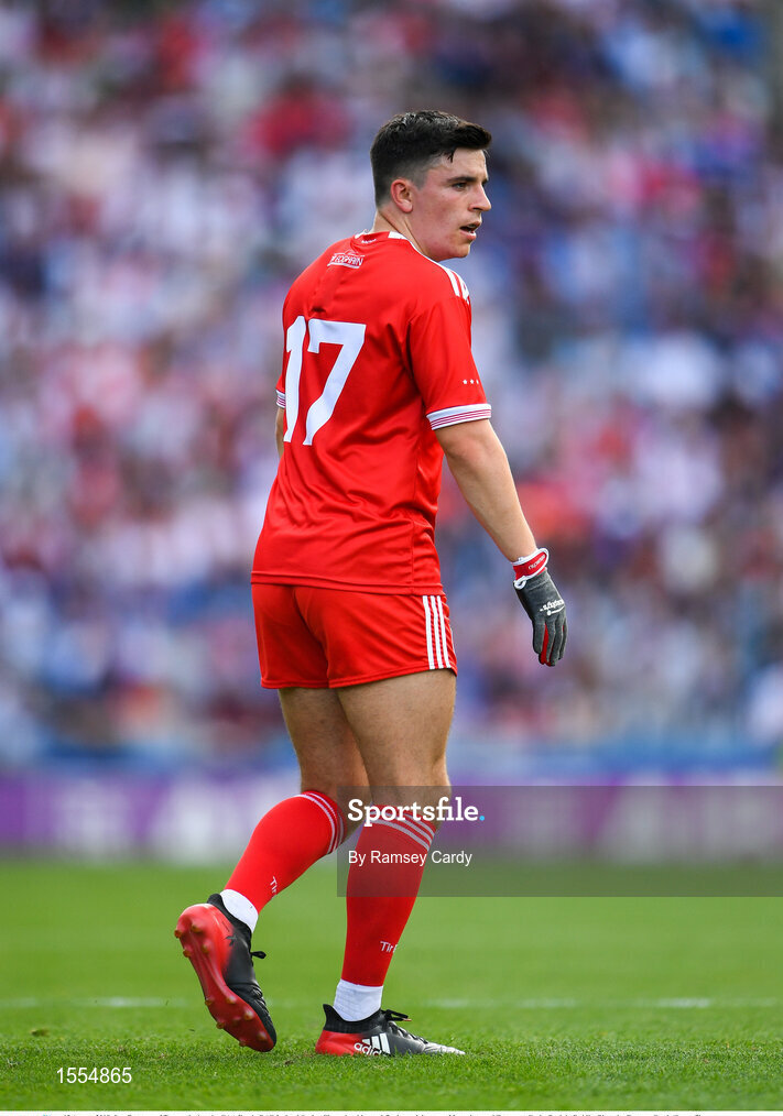 12 August 2018; Lee Brennan of Tyrone during the GAA Football All-Ireland Senior Championship semi-final match between Monaghan and Tyrone at Croke Park in Dublin. Photo by Ramsey Cardy/Sportsfile
