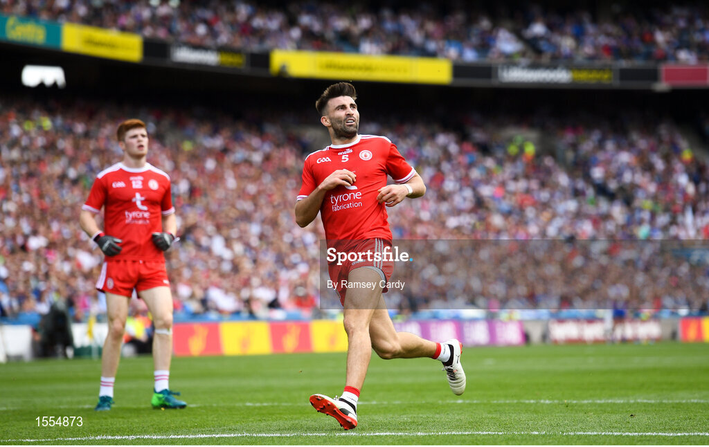12 August 2018; Tiernan McCann of Tyrone during the GAA Football All-Ireland Senior Championship semi-final match between Monaghan and Tyrone at Croke Park in Dublin. Photo by Ramsey Cardy/Sportsfile