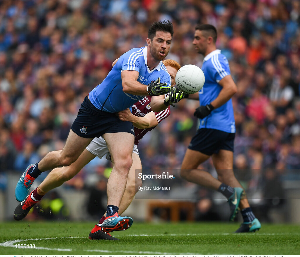11 August 2018; Michael Darragh Macauley of Dublin in action against Adrian Varley of Galway during the GAA Football All-Ireland Senior Championship semi-final match between Dublin and Galway at Croke Park in Dublin. Photo by Ray McManus/Sportsfile