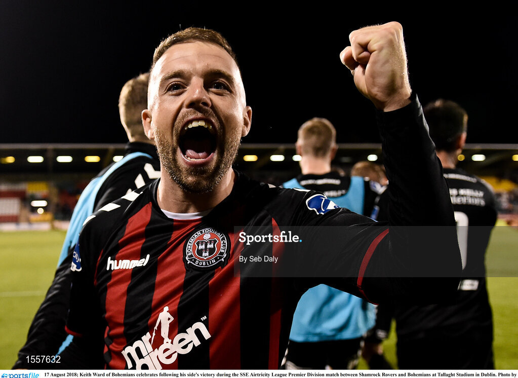 17 August 2018; Keith Ward of Bohemians celebrates following his side's victory during the SSE Airtricity League Premier Division match between Shamrock Rovers and Bohemians at Tallaght Stadium in Dublin. Photo by Seb Daly/Sportsfile