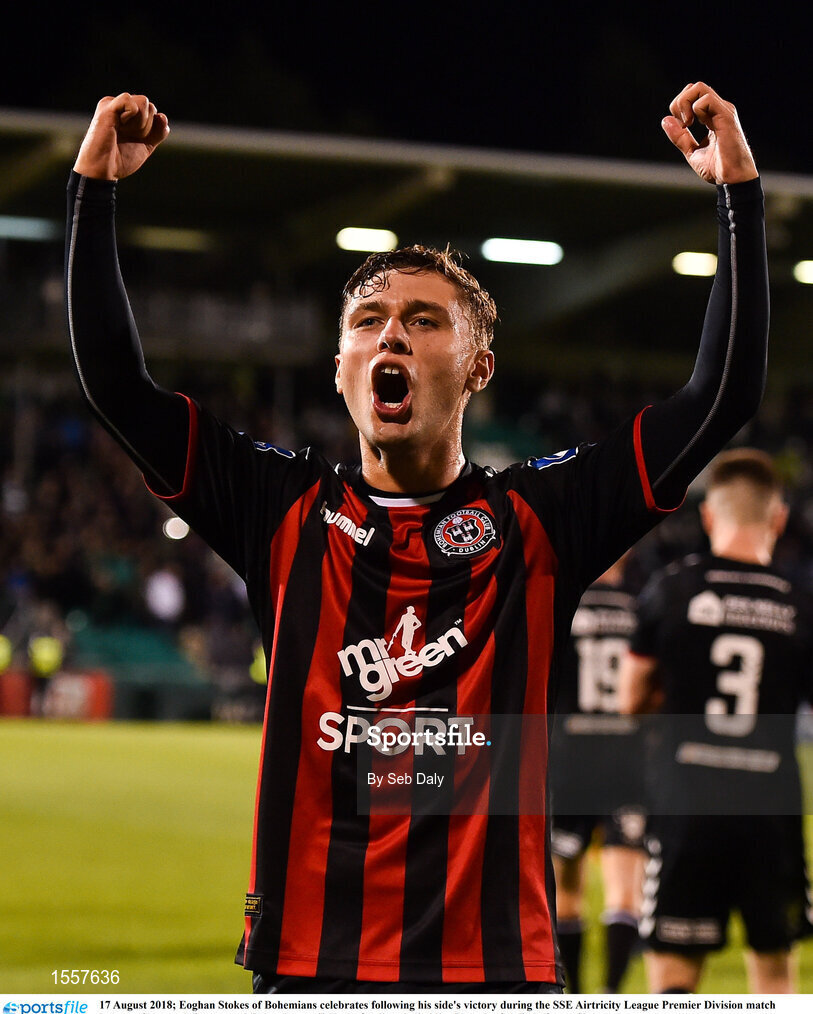 17 August 2018; Eoghan Stokes of Bohemians celebrates following his side's victory during the SSE Airtricity League Premier Division match between Shamrock Rovers and Bohemians at Tallaght Stadium in Dublin. Photo by Seb Daly/Sportsfile