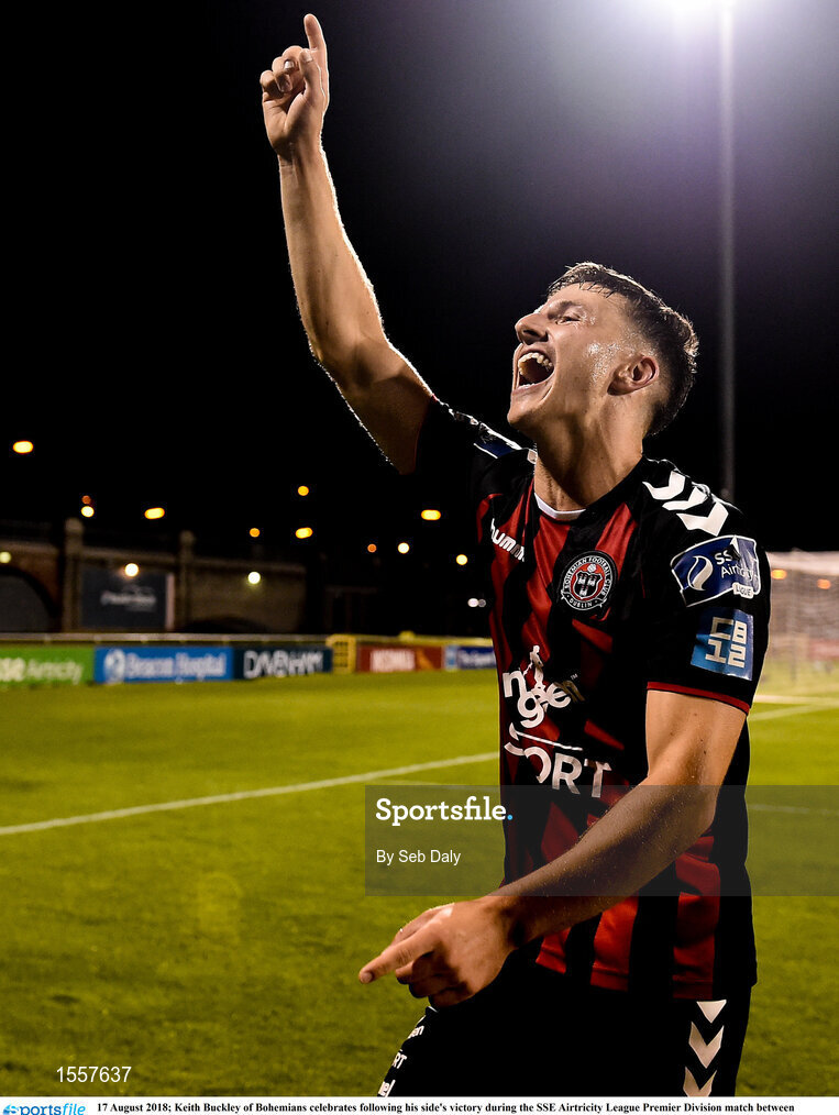 17 August 2018; Keith Buckley of Bohemians celebrates following his side's victory during the SSE Airtricity League Premier Division match between Shamrock Rovers and Bohemians at Tallaght Stadium in Dublin. Photo by Seb Daly/Sportsfile