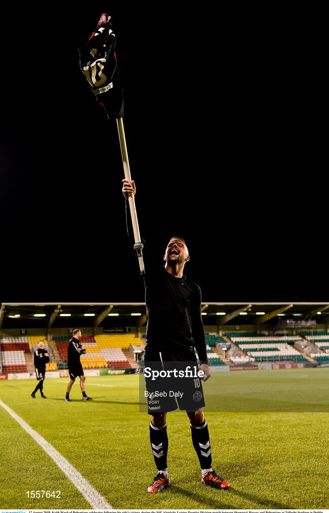 17 August 2018; Keith Ward of Bohemians celebrates following his side's victory during the SSE Airtricity League Premier Division match between Shamrock Rovers and Bohemians at Tallaght Stadium in Dublin. Photo by Seb Daly/Sportsfile