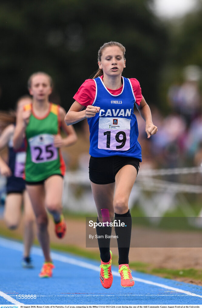 18 August 2018; Renee Crotty of St Patricks, Co.Cavan, competing in the 800m U14 & O12 Girls event during day one of the Aldi Community Games August Festival at the University of Limerick in Limerick. Photo by Sam Barnes/Sportsfile