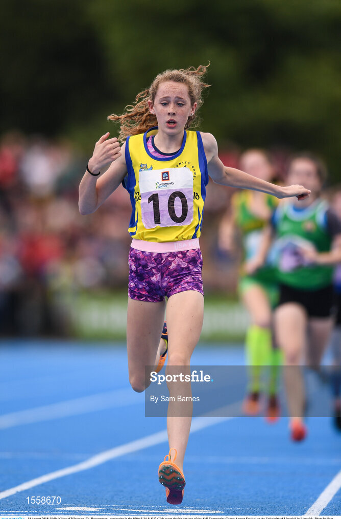 18 August 2018; Holly Kilroe of Kilteevan, Co. Roscommon, competing in the 800m U14 & O12 Girls event during day one of the Aldi Community Games August Festival at the University of Limerick in Limerick. Photo by Sam Barnes/Sportsfile
