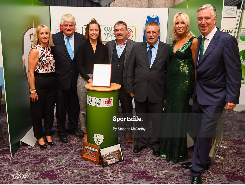 17 August 2018; John Delaney, CEO, Football Association of Ireland, his partner Emma English and Denis O'Brien with attendees from Colga FC in Galway at the FAI Delegates Dinner & FAI Communications Awards at the Rochestown Park Hotel in Cork. Photo by Stephen McCarthy/Sportsfile