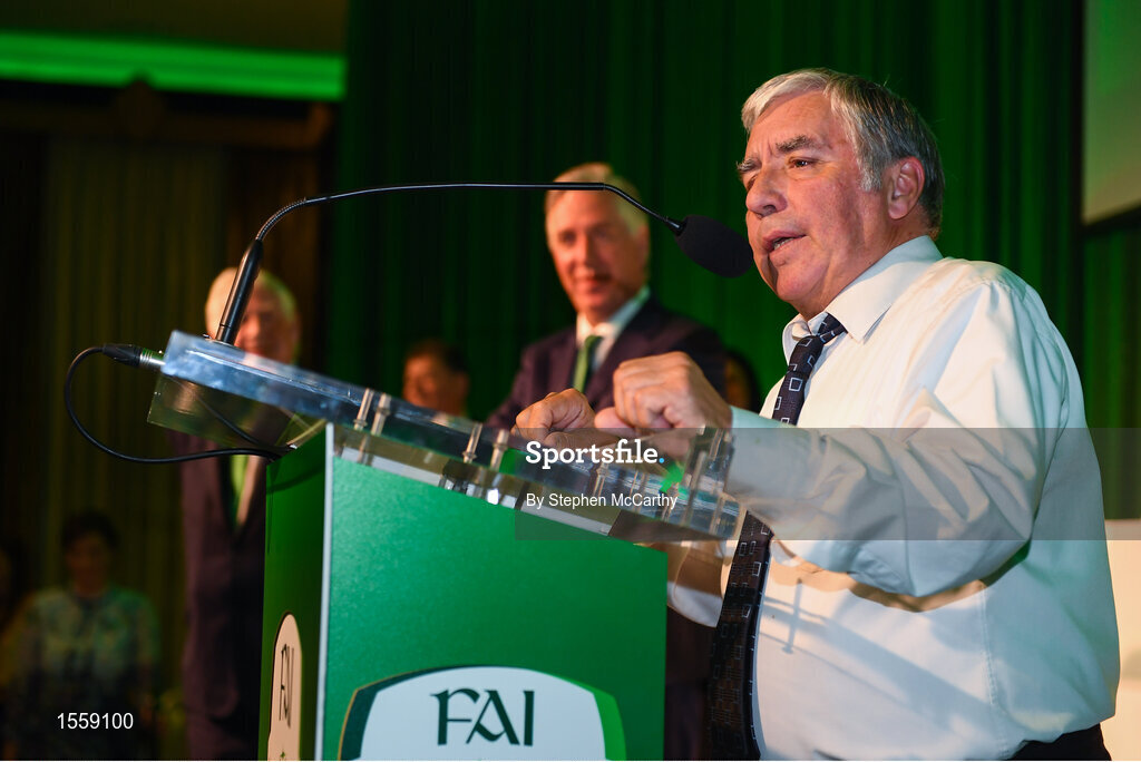 17 August 2018; Donnie Harmon of Kilnamanagh FC, Dublin, makes a speech after receiving his John Sherlock Services to Football Award at the FAI Delegates Dinner & FAI Communications Awards at the Rochestown Park Hotel in Cork. Photo by Stephen McCarthy/Sportsfile