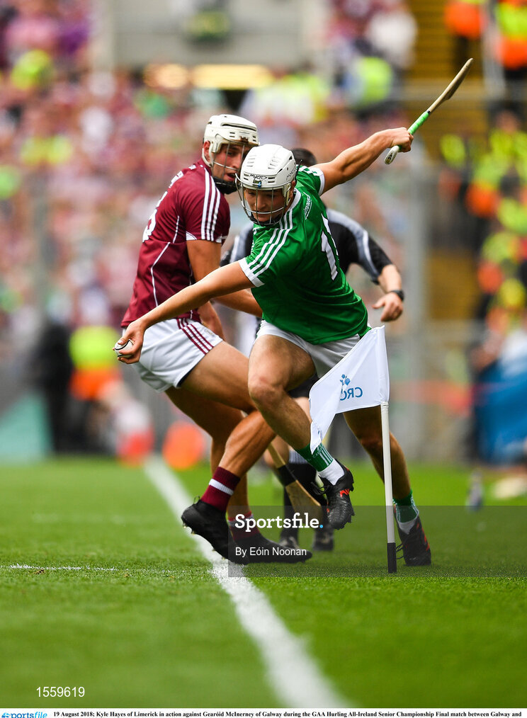 19 August 2018; Kyle Hayes of Limerick in action against Gearóid McInerney of Galway during the GAA Hurling All-Ireland Senior Championship Final match between Galway and Limerick at Croke Park in Dublin. Photo by Eóin Noonan/Sportsfile