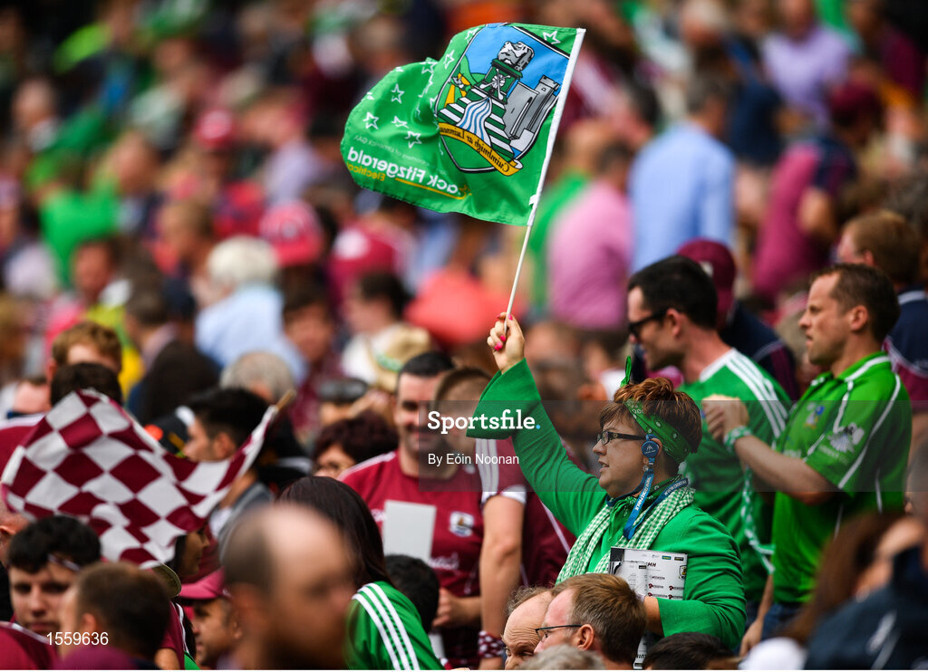 19 August 2018; A Limerick supporter at half-time during the GAA Hurling All-Ireland Senior Championship Final match between Galway and Limerick at Croke Park in Dublin. Photo by Eóin Noonan/Sportsfile
