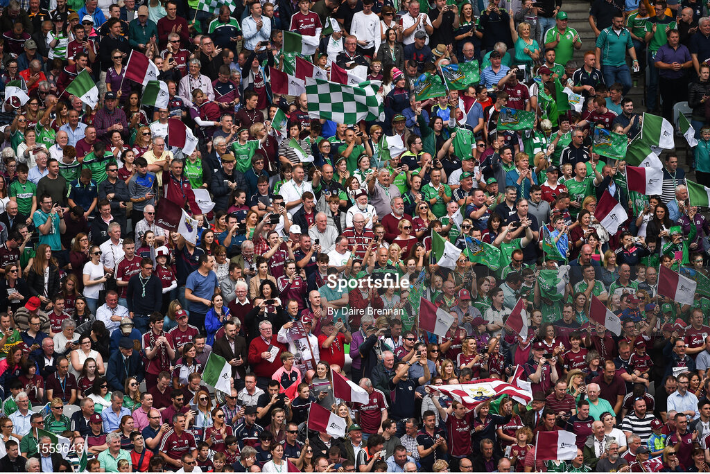 19 August 2018; Limerick and Galway supporters in the Cusack Stand ahead of the GAA Hurling All-Ireland Senior Championship Final match between Galway and Limerick at Croke Park in Dublin. Photo by Daire Brennan/Sportsfile
