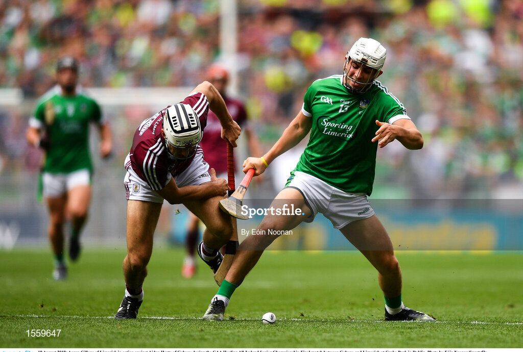 19 August 2018; Aaron Gillane of Limerick in action against Aidan Harte of Galway during the GAA Hurling All-Ireland Senior Championship Final match between Galway and Limerick at Croke Park in Dublin. Photo by Eóin Noonan/Sportsfile