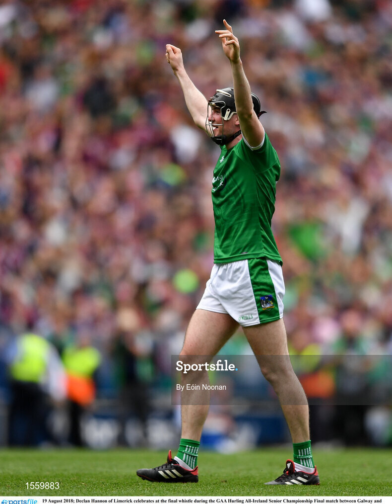 19 August 2018; Declan Hannon of Limerick celebrates at the final whistle during the GAA Hurling All-Ireland Senior Championship Final match between Galway and Limerick at Croke Park in Dublin. Photo by Eóin Noonan/Sportsfile