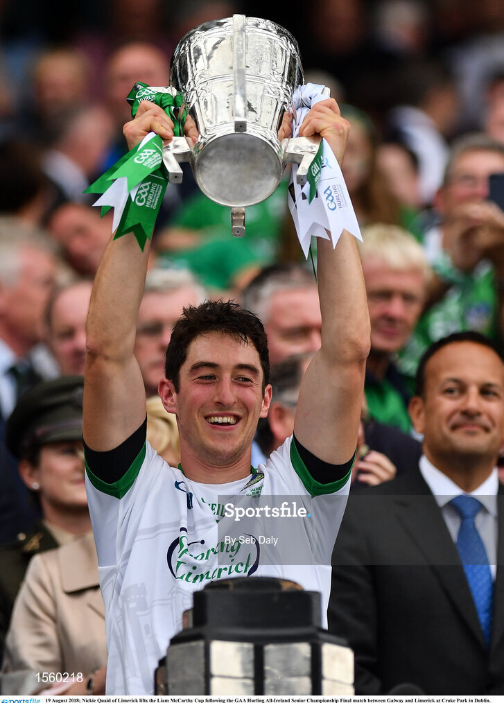 19 August 2018; Nickie Quaid of Limerick lifts the Liam MacCarthy Cup following the GAA Hurling All-Ireland Senior Championship Final match between Galway and Limerick at Croke Park in Dublin. Photo by Seb Daly/Sportsfile