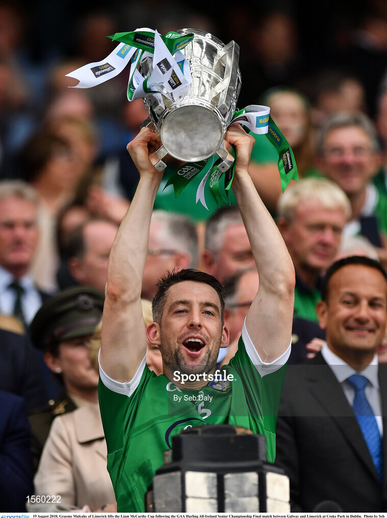 19 August 2018; Graeme Mulcahy of Limerick lifts the Liam MacCarthy Cup following the GAA Hurling All-Ireland Senior Championship Final match between Galway and Limerick at Croke Park in Dublin. Photo by Seb Daly/Sportsfile