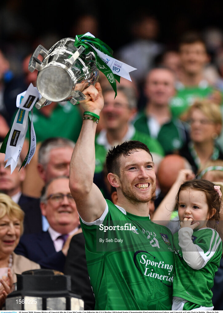 19 August 2018; Séamus Hickey of Limerick lifts the Liam MacCarthy Cup following the GAA Hurling All-Ireland Senior Championship Final match between Galway and Limerick at Croke Park in Dublin. Photo by Seb Daly/Sportsfile