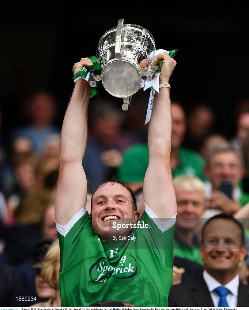 19 August 2018; Shane Dowling of Limerick lifts the Liam MacCarthy Cup following the GAA Hurling All-Ireland Senior Championship Final match between Galway and Limerick at Croke Park in Dublin. Photo by Seb Daly/Sportsfile