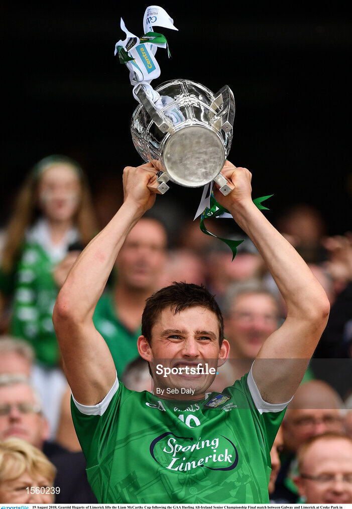 19 August 2018; Gearóid Hegarty of Limerick lifts the Liam MacCarthy Cup following the GAA Hurling All-Ireland Senior Championship Final match between Galway and Limerick at Croke Park in Dublin. Photo by Seb Daly/Sportsfile