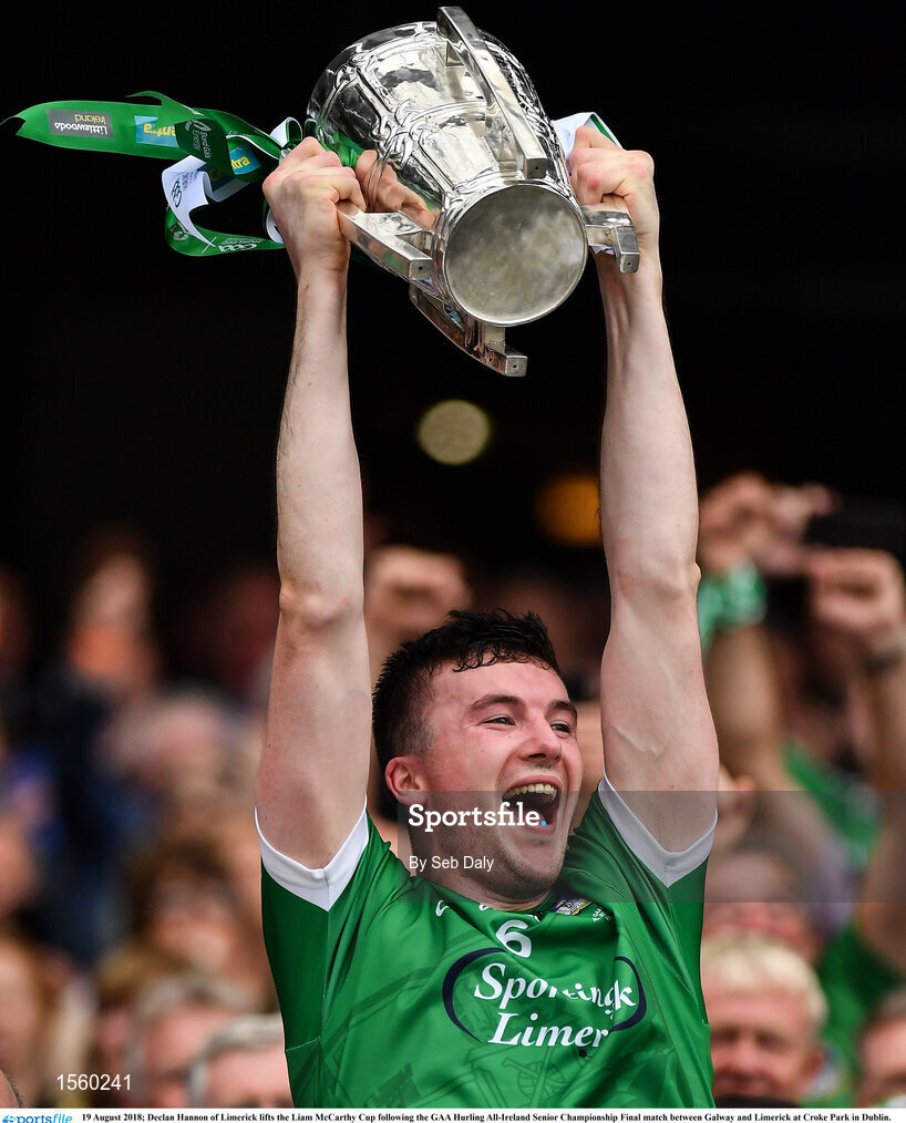 19 August 2018; Declan Hannon of Limerick lifts the Liam MacCarthy Cup following the GAA Hurling All-Ireland Senior Championship Final match between Galway and Limerick at Croke Park in Dublin. Photo by Seb Daly/Sportsfile