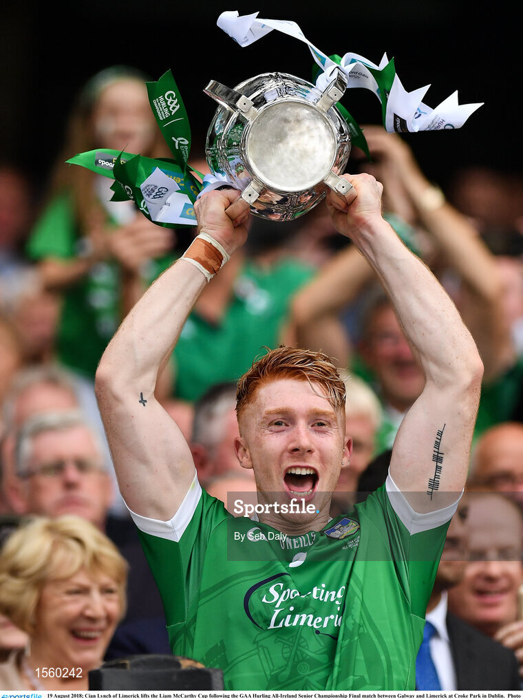 19 August 2018; Cian Lynch of Limerick lifts the Liam MacCarthy Cup following the GAA Hurling All-Ireland Senior Championship Final match between Galway and Limerick at Croke Park in Dublin. Photo by Seb Daly/Sportsfile