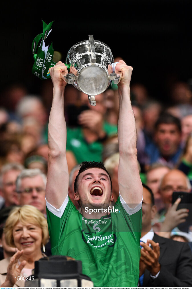 19 August 2018; Declan Hannon of Limerick lifts the Liam MacCarthy Cup following the GAA Hurling All-Ireland Senior Championship Final match between Galway and Limerick at Croke Park in Dublin. Photo by Seb Daly/Sportsfile