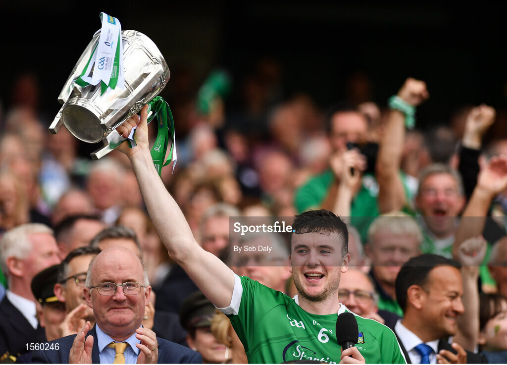 19 August 2018; Declan Hannon of Limerick lifts the Liam MacCarthy Cup following the GAA Hurling All-Ireland Senior Championship Final match between Galway and Limerick at Croke Park in Dublin. Photo by Seb Daly/Sportsfile