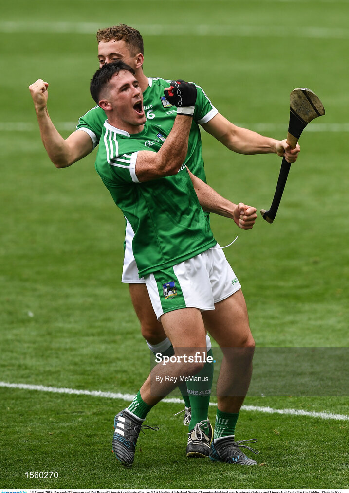 19 August 2018; Darragh O'Donovan and Pat Ryan of Limerick celebrate after the GAA Hurling All-Ireland Senior Championship Final match between Galway and Limerick at Croke Park in Dublin. Photo by Ray McManus/Sportsfile