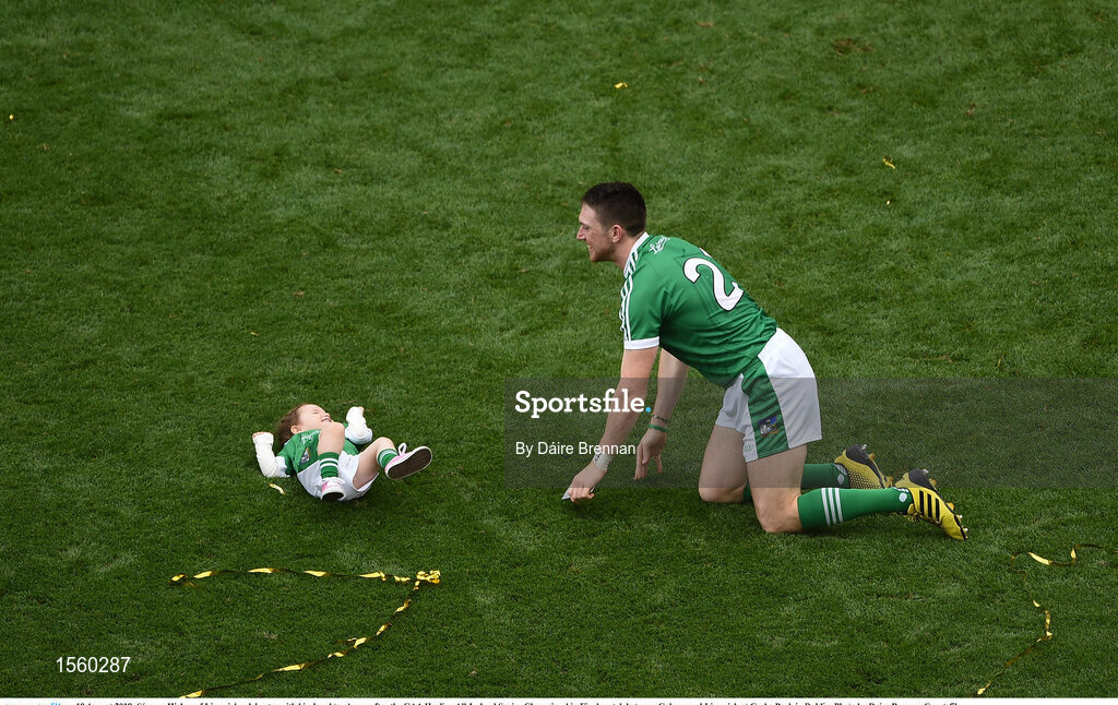 19 August 2018; Séamus Hickey of Limerick celebrates with his daughter Anna, after the GAA Hurling All-Ireland Senior Championship Final match between Galway and Limerick at Croke Park in Dublin. Photo by Daire Brennan/Sportsfile