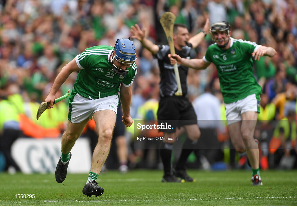 19 August 2018; Richie McCarthy, left, and Declan Hannon of Limerick celebrate after the GAA Hurling All-Ireland Senior Championship Final match between Galway and Limerick at Croke Park in Dublin. Photo by Piaras Ó Mídheach/Sportsfile