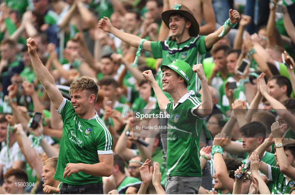 19 August 2018; Limerick supporters celebrate on Hill 16 after the GAA Hurling All-Ireland Senior Championship Final match between Galway and Limerick at Croke Park in Dublin. Photo by Piaras Ó Mídheach/Sportsfile