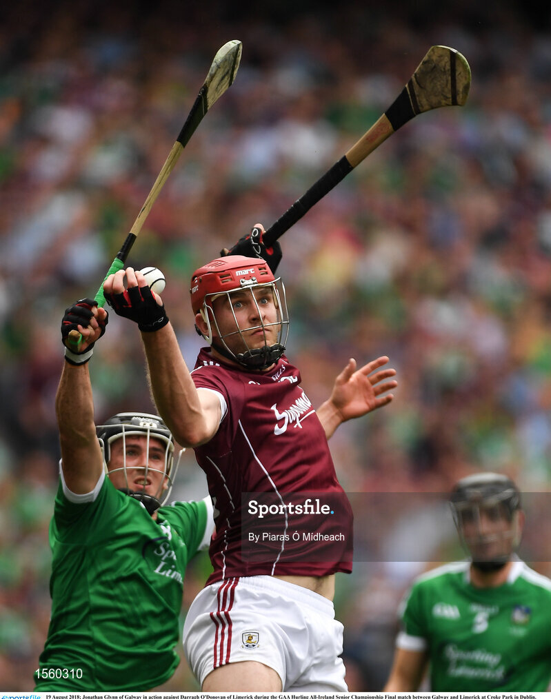 19 August 2018; Jonathan Glynn of Galway in action against Darragh O'Donovan of Limerick during the GAA Hurling All-Ireland Senior Championship Final match between Galway and Limerick at Croke Park in Dublin. Photo by Piaras Ó Mídheach/Sportsfile