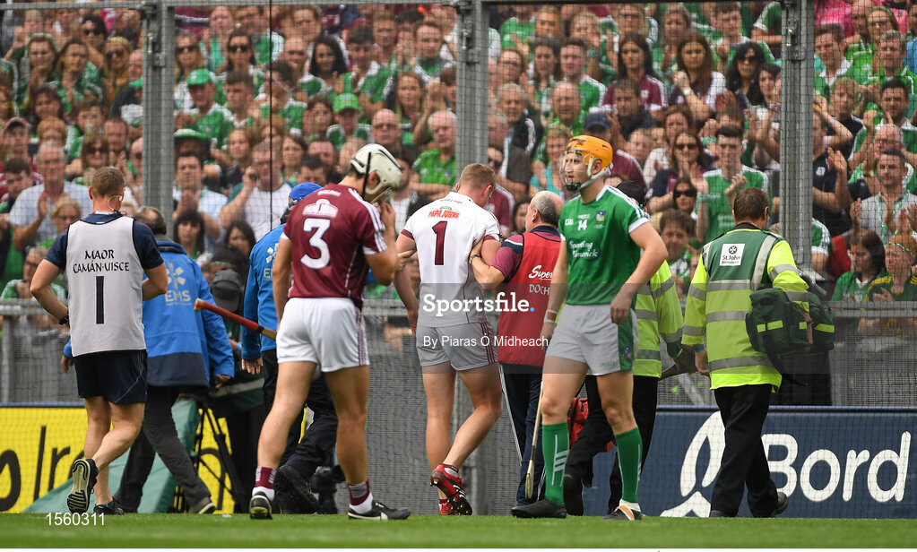 19 August 2018; Galway goalkeeper James Skehill leaves the field after picking up an injury during the GAA Hurling All-Ireland Senior Championship Final match between Galway and Limerick at Croke Park in Dublin. Photo by Piaras Ó Mídheach/Sportsfile