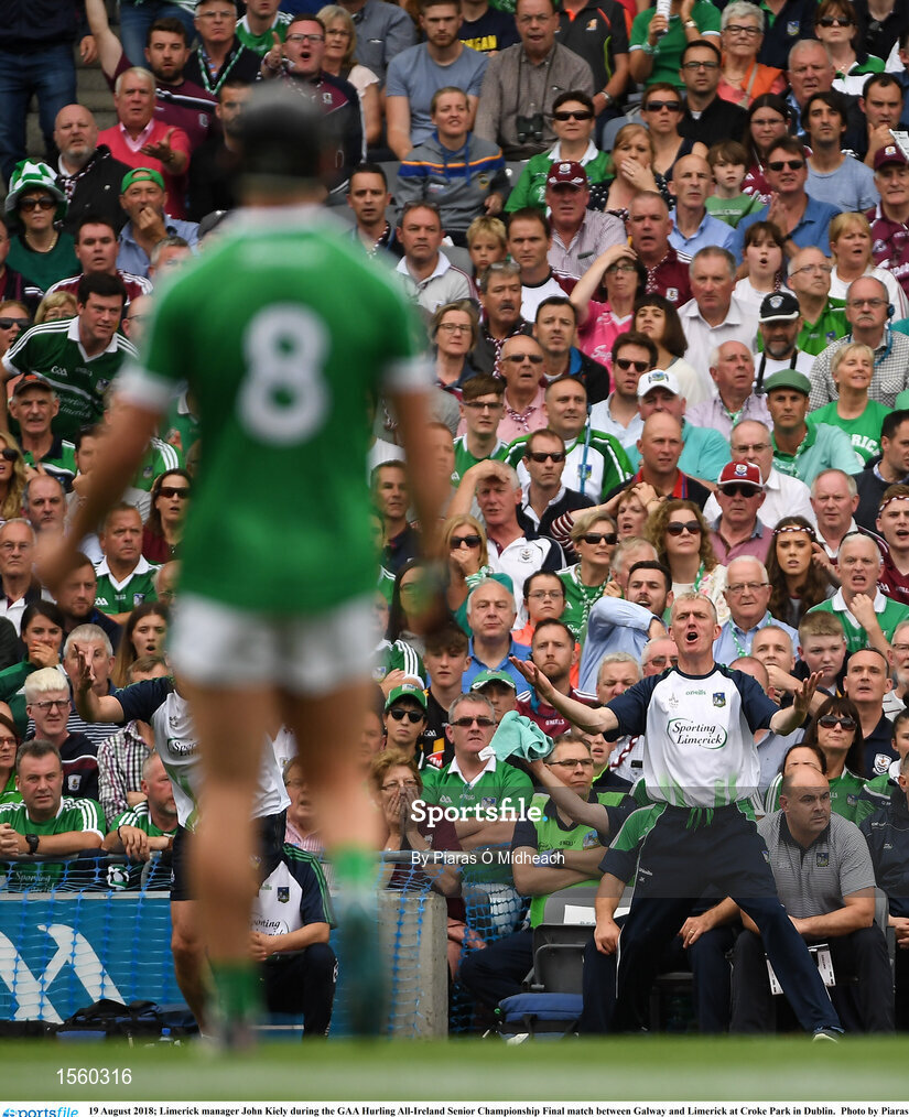 19 August 2018; Limerick manager John Kiely during the GAA Hurling All-Ireland Senior Championship Final match between Galway and Limerick at Croke Park in Dublin. Photo by Piaras Ó Mídheach/Sportsfile