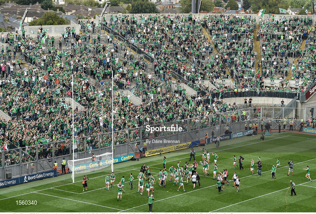 19 August 2018; Limerick players and supporters celebrate after the GAA Hurling All-Ireland Senior Championship Final match between Galway and Limerick at Croke Park in Dublin. Photo by Daire Brennan/Sportsfile
