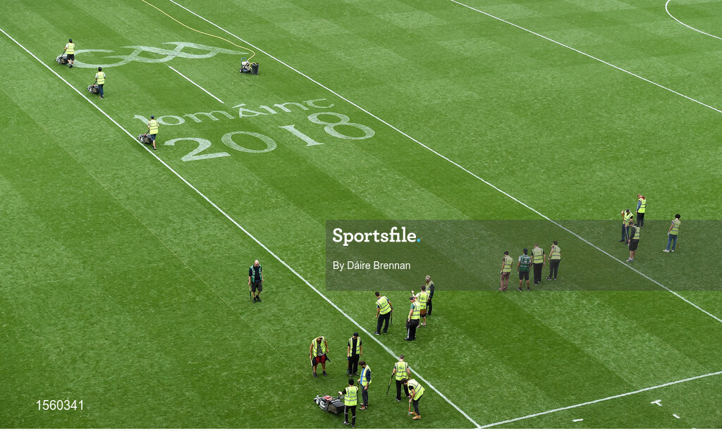 19 August 2018; Groundstaff attend to the pitch after the GAA Hurling All-Ireland Senior Championship Final match between Galway and Limerick at Croke Park in Dublin. Photo by Daire Brennan/Sportsfile
