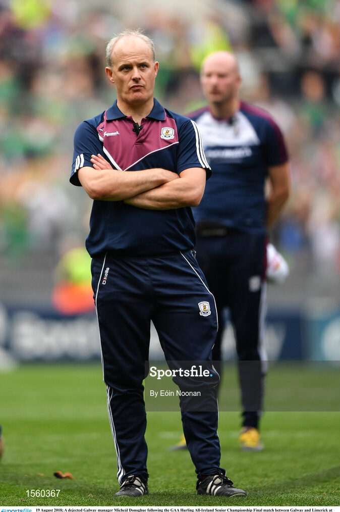 19 August 2018; A dejected Galway manager Micheál Donoghue following the GAA Hurling All-Ireland Senior Championship Final match between Galway and Limerick at Croke Park in Dublin. Photo by Eóin Noonan/Sportsfile
