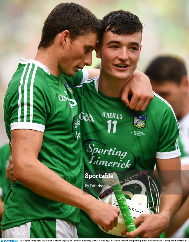 19 August 2018; Kyle Hayes with Gearóid Hegarty of Limerick following the GAA Hurling All-Ireland Senior Championship Final match between Galway and Limerick at Croke Park in Dublin. Photo by Eóin Noonan/Sportsfile