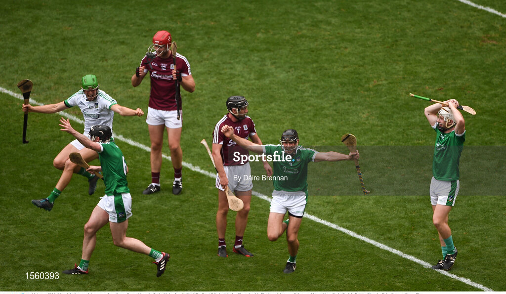 19 August 2018; Limerick players celebrate as referee James Owens blows the final whistle after the GAA Hurling All-Ireland Senior Championship Final match between Galway and Limerick at Croke Park in Dublin. Photo by Daire Brennan/Sportsfile