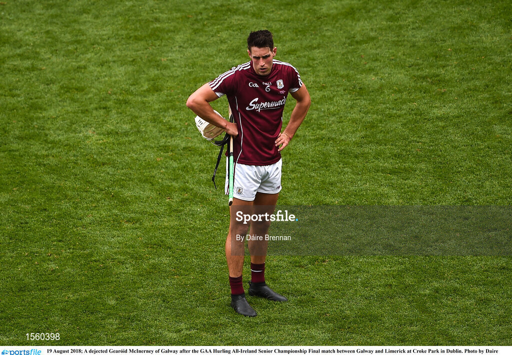 19 August 2018; A dejected Gearóid McInerney of Galway after the GAA Hurling All-Ireland Senior Championship Final match between Galway and Limerick at Croke Park in Dublin. Photo by Daire Brennan/Sportsfile