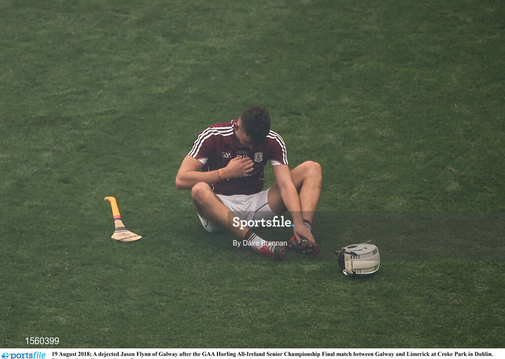 19 August 2018; A dejected Jason Flynn of Galway after the GAA Hurling All-Ireland Senior Championship Final match between Galway and Limerick at Croke Park in Dublin. Photo by Daire Brennan/Sportsfile