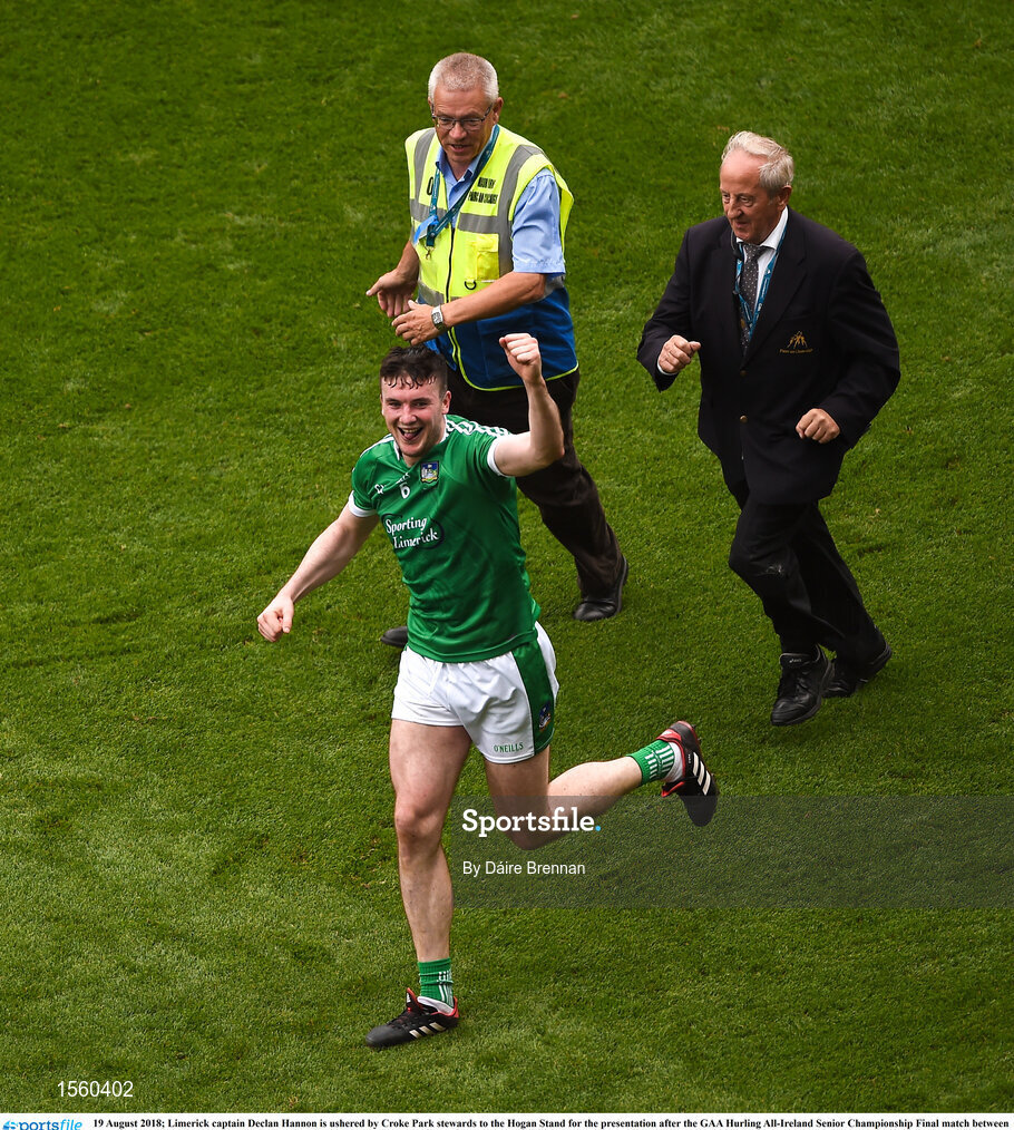 19 August 2018; Limerick captain Declan Hannon is ushered by Croke Park stewards to the Hogan Stand for the presentation after the GAA Hurling All-Ireland Senior Championship Final match between Galway and Limerick at Croke Park in Dublin. Photo by Daire Brennan/Sportsfile